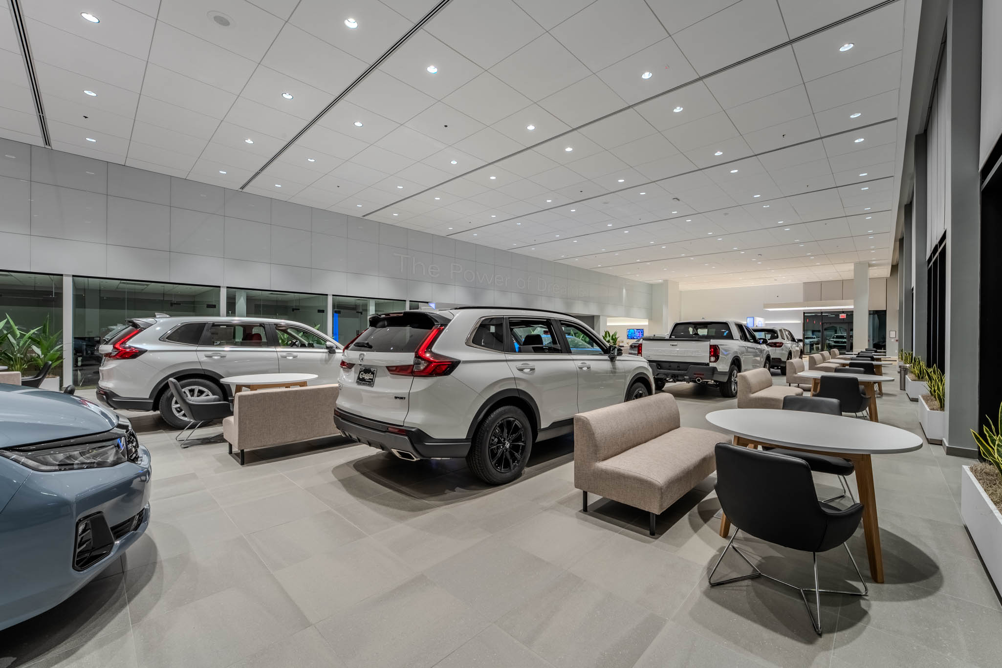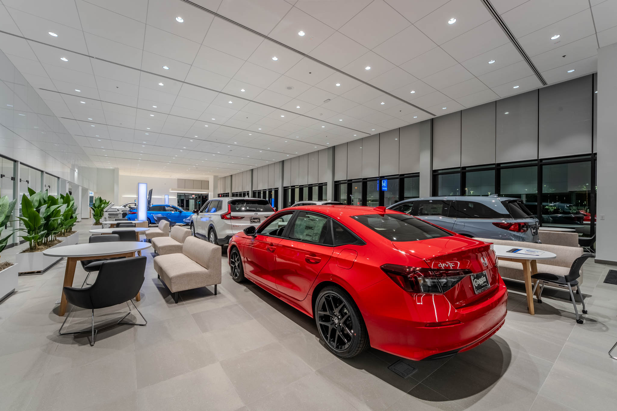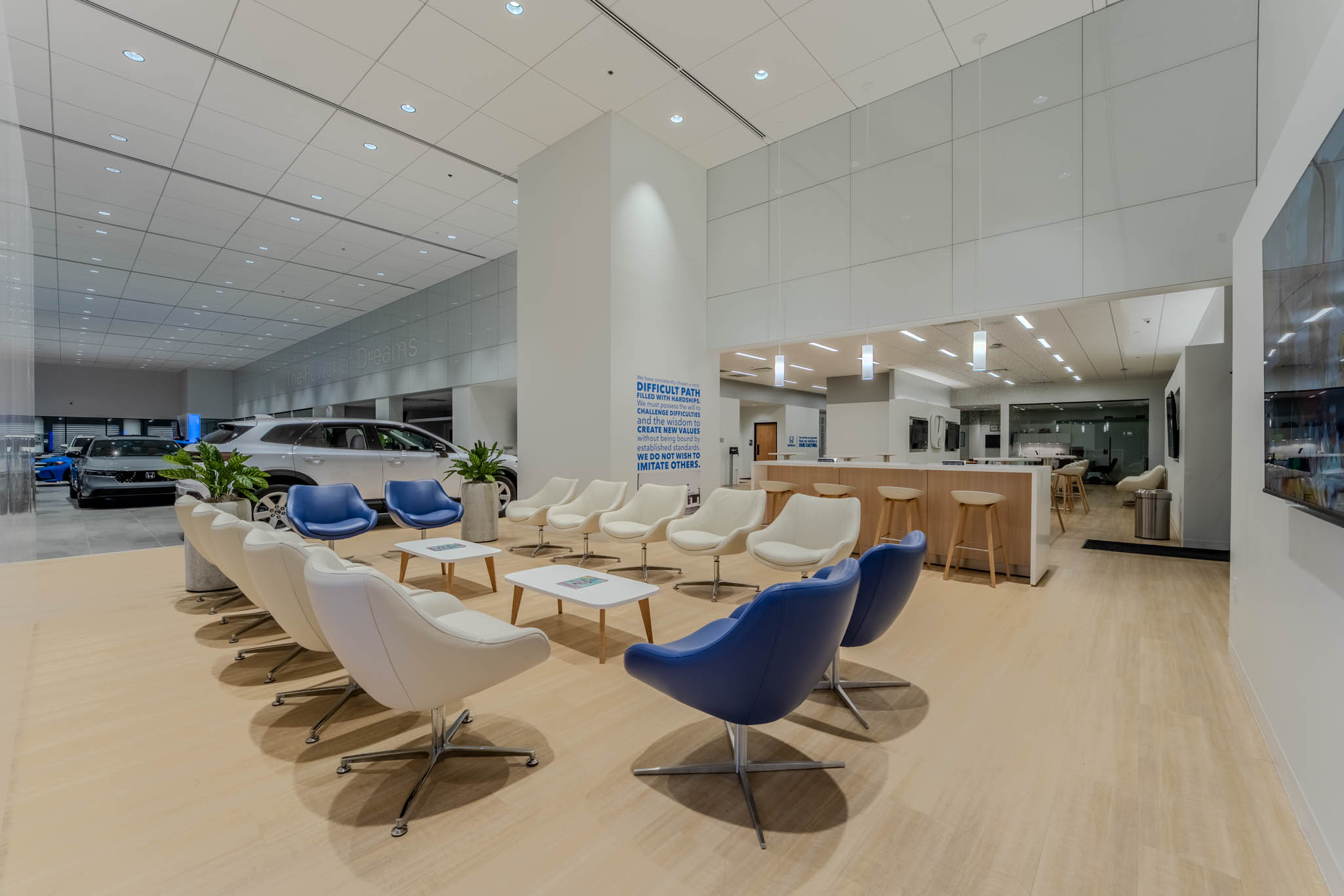 PRAXIS3 recently completed an image refresh and renovation for Asbury Automotive Group’s Coggin Honda of Orlando, one of the first showrooms nationwide to introduce the Honda Blue Stage Generation 4 design. Moving beyond a traditional sales-focused model, this new concept fosters a more inviting, engaging, and personalized customer experience.