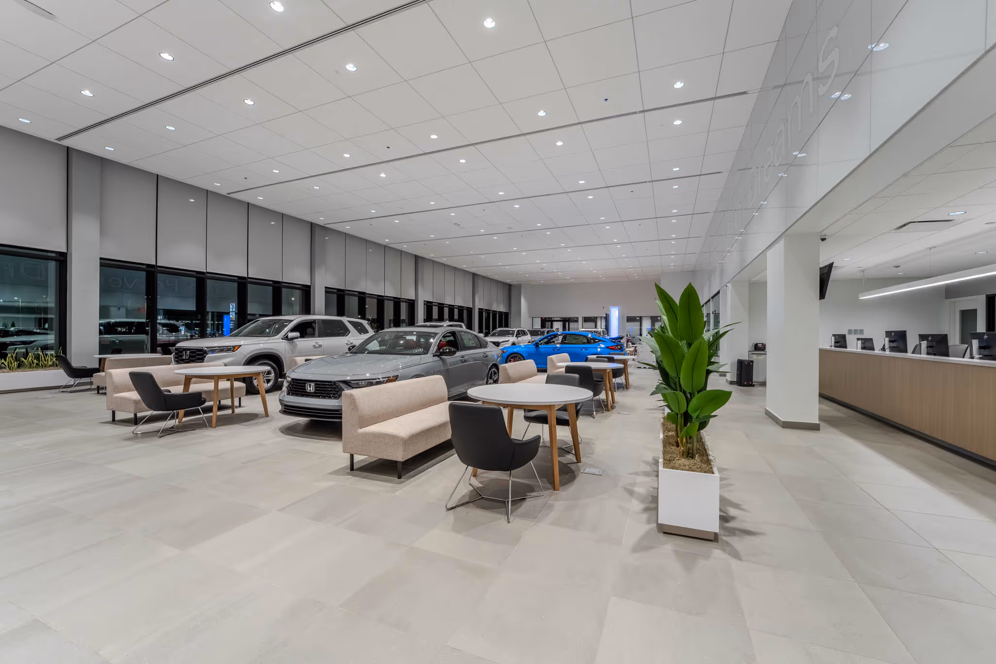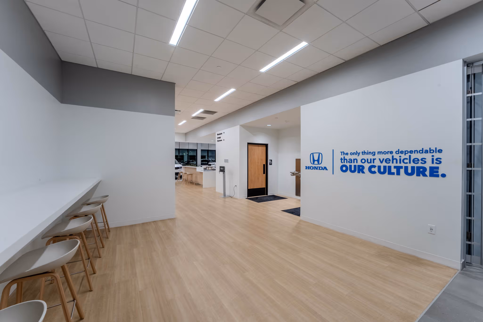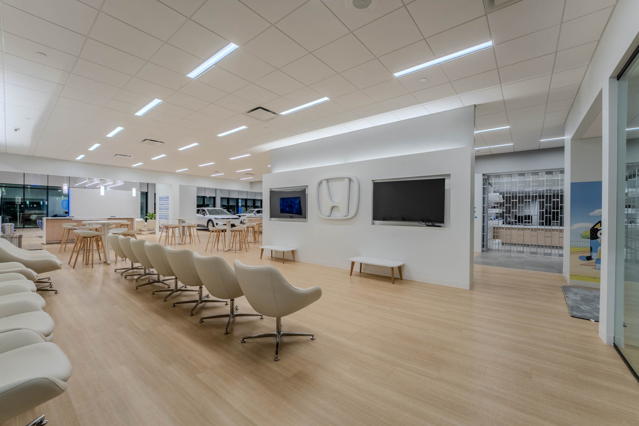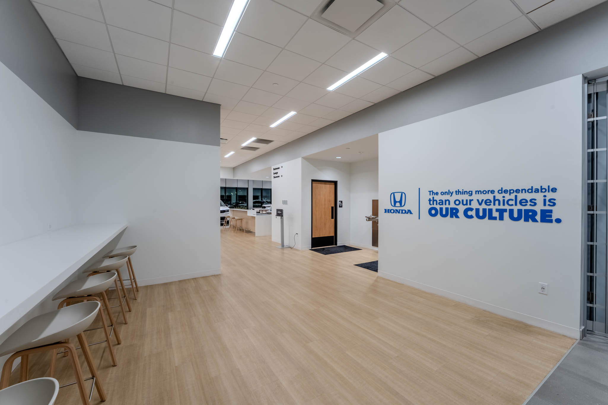 PRAXIS3 recently completed an image refresh and renovation for Asbury Automotive Group’s Coggin Honda of Orlando, one of the first showrooms nationwide to introduce the Honda Blue Stage Generation 4 design. Moving beyond a traditional sales-focused model, this new concept fosters a more inviting, engaging, and personalized customer experience.