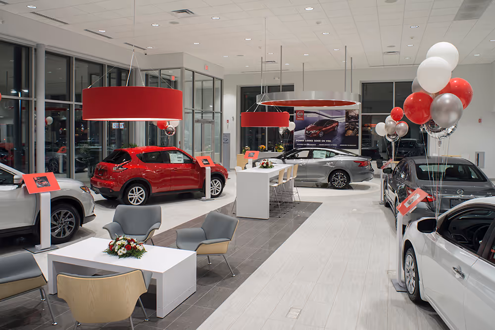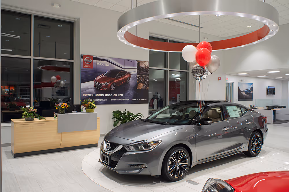 Lia Nissan of Glens Falls is a newly constructed automotive dealership developed in collaboration with the Lia Auto Group, a repeat client of PRAXIS3. Built on a vacant site, the facility features a 9,535-square-foot showroom designed to showcase Nissan’s latest models, and a 9,095-square-foot service area equipped with eight service bays, one wash bay, and one alignment bay, providing comprehensive support for both sales and service needs.