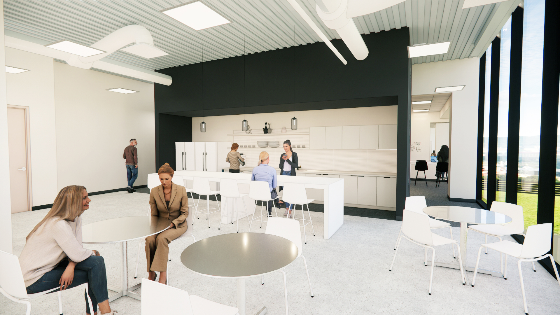 Three years after the initial renovation by PRAXIS3, Modo Modo expanded into two adjacent suites to accommodate their growing team and establish a dedicated Executive Wing. Separated from the main space by the existing break area wall, this addition offers enhanced quiet and privacy while maintaining the original suite’s vibrant design aesthetic, now elevated with more sophisticated and upscale finishes. The Executive Wing reflects the agency’s evolving brand, blending warmth, tranquility, and functionality. Key features include expanded conferencing spaces, additional phone rooms, a new Wellness Room, and an exclusive executive break and lounge area. These updates ensure a refined, professional atmosphere while reflecting the evolution of the agency’s brand journey.