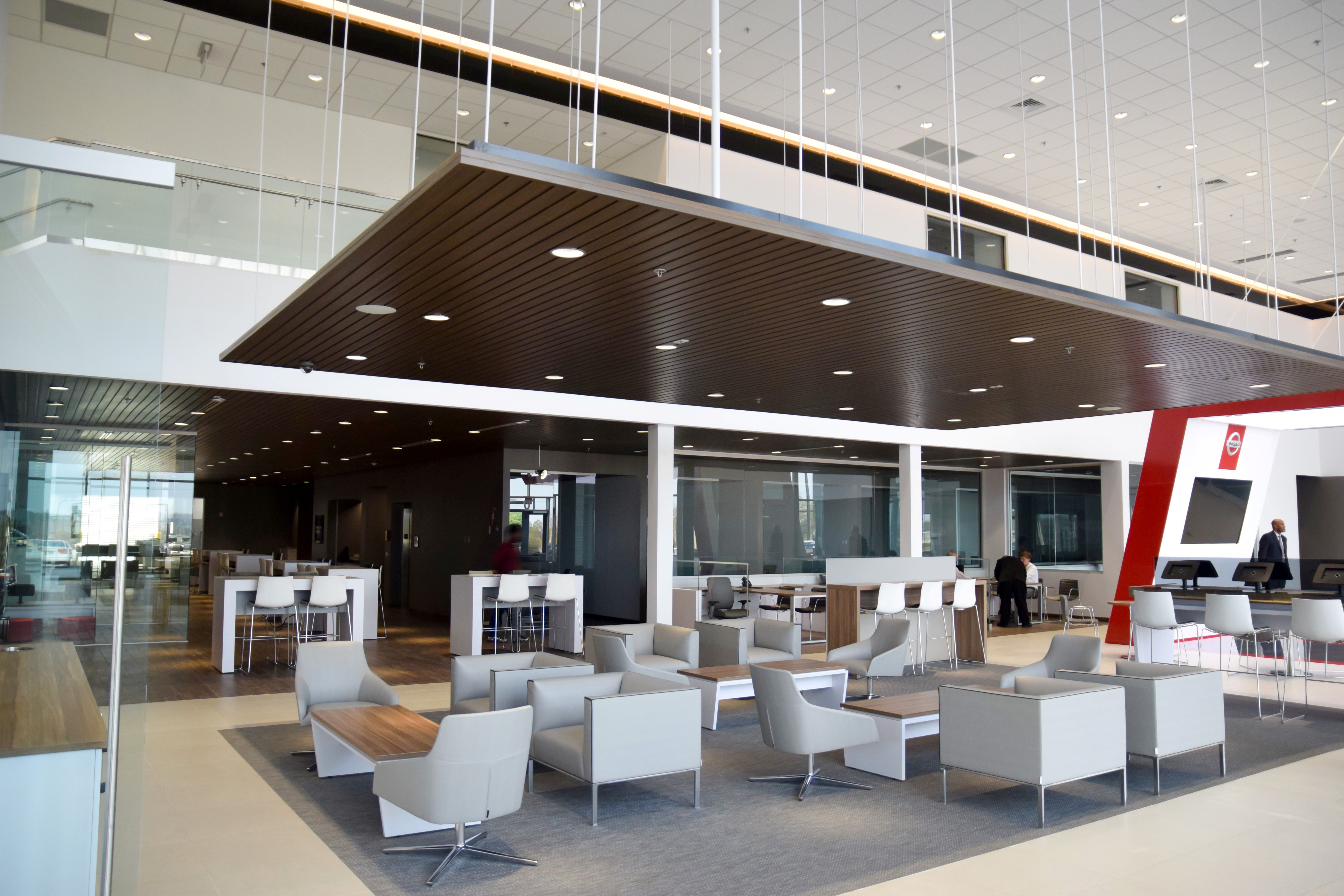 Sutherlin Nissan Cherokee County is a ground-up automotive sales and service facility designed under Nissan’s latest global retail image program, NREDI 2.0. Sutherlin Nissan’s spacious, two-story showroom of almost 4,000 SF features a grand terrazzo stair, with overlooking views of the future vehicle display and the bold, red “Nissan Drive”. The service portion of the dealership houses a carwash and shop that includes 17 service bays, 5 detail bays, 2 commercial vehicle bays, which customers can view while relaxing in the café and lounge area. In order to comply with the City of Holly Springs’ traditional neighborhood architectural guidelines, PRAXIS3 designed a fresh take on the “village” look that unifies the local character with the exciting retail experience of Nissan.